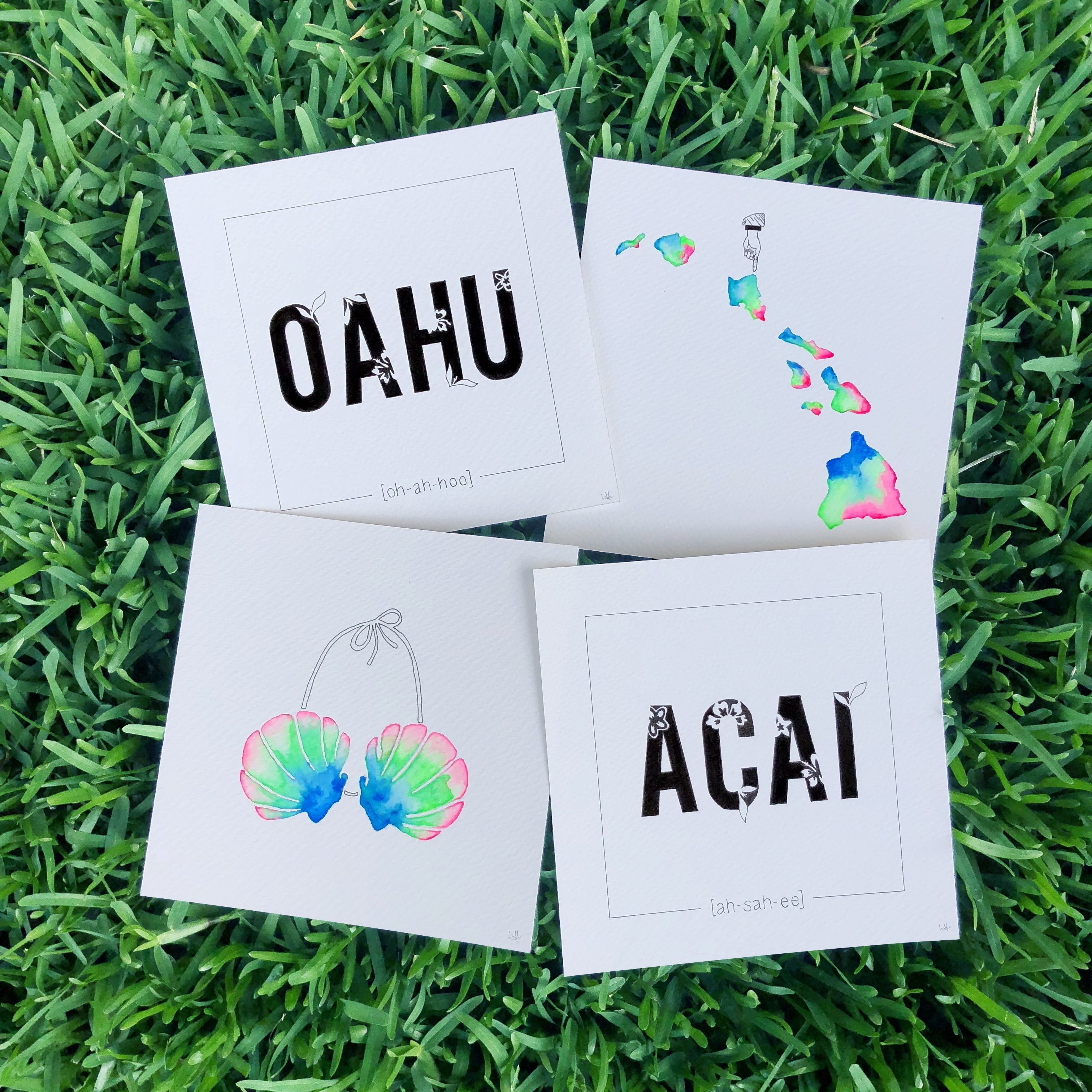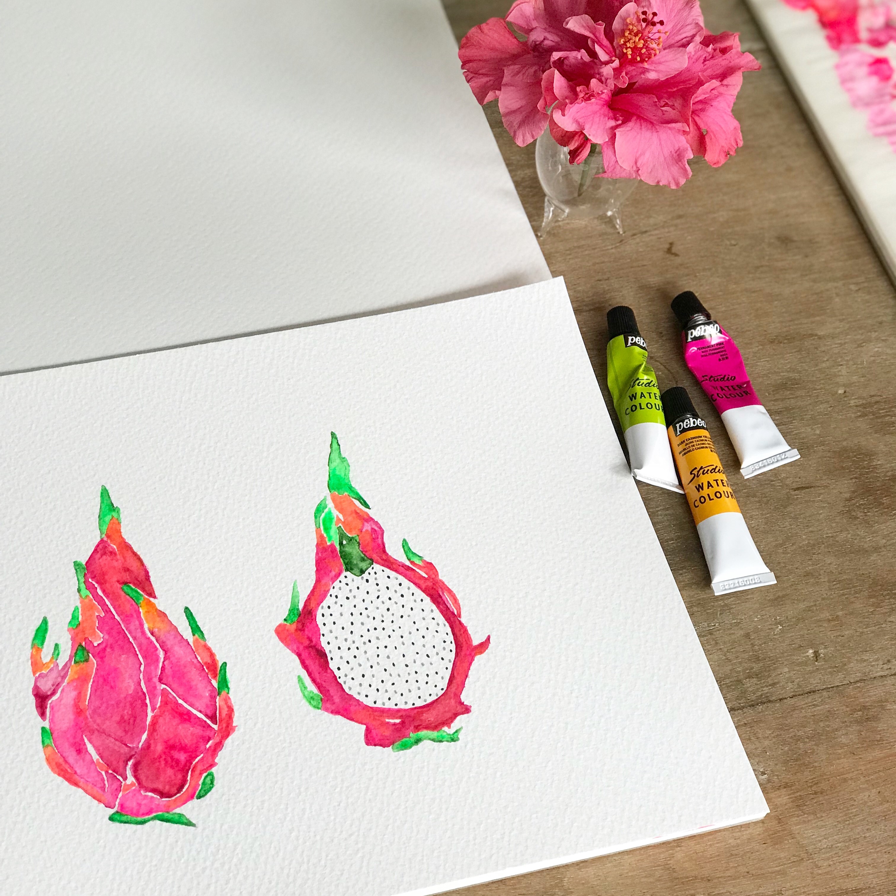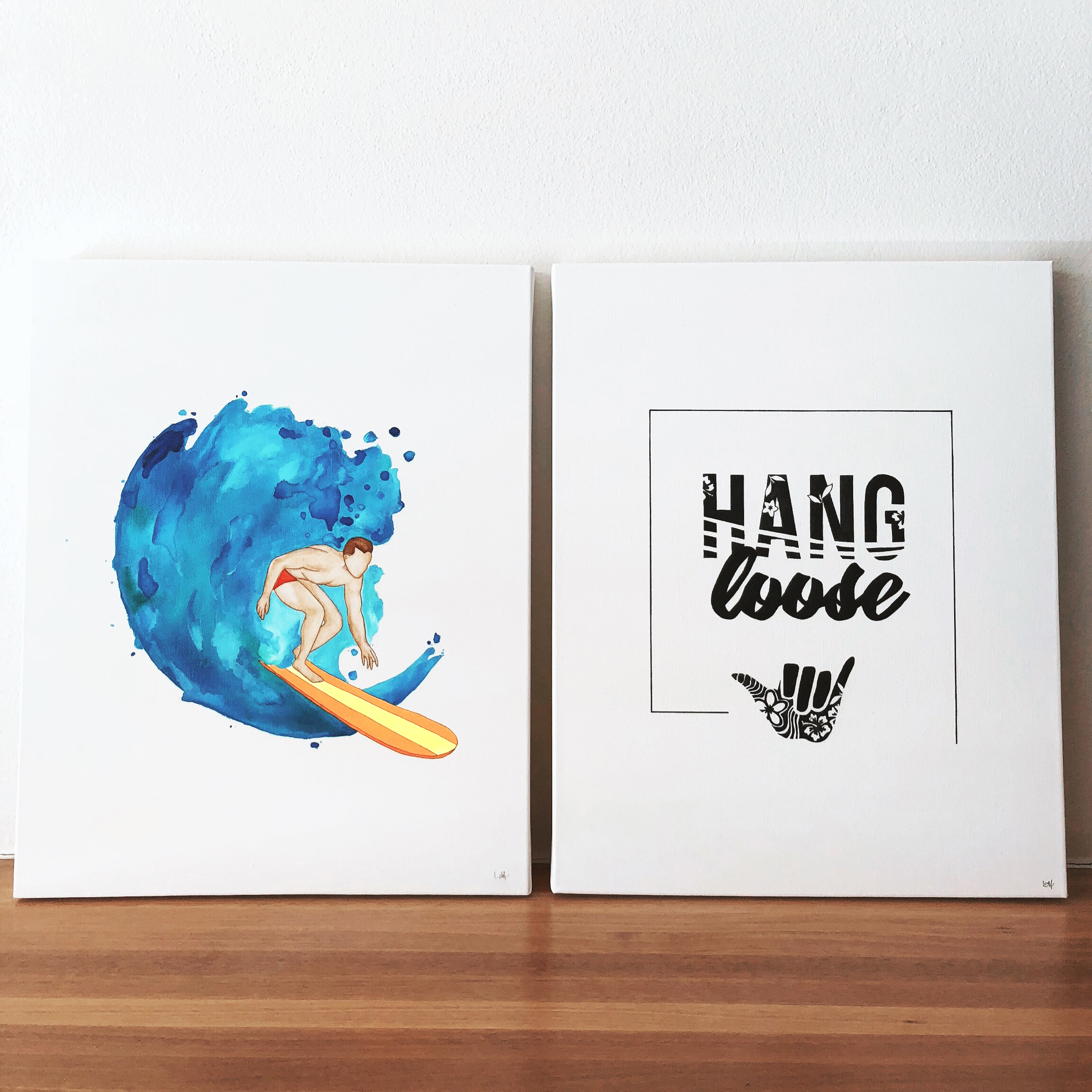 Pen and watercolour illustrations on paper and canvas