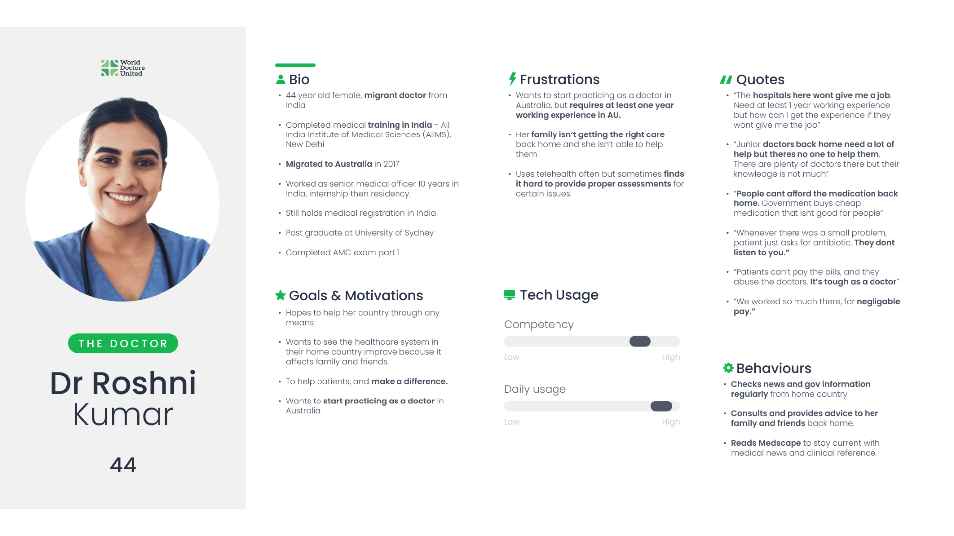 "It's such a beautiful project and storytelling piece - it has such empathy and pathos in an area which is of great interest and importance to the Australian population. The elegancy of balancing out your personas was absolutely glorious - everything came back to the pain points and the research."